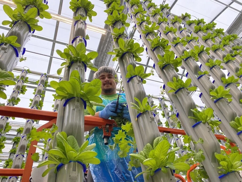 Harvesting at an Eden Green Technology greenhouse.