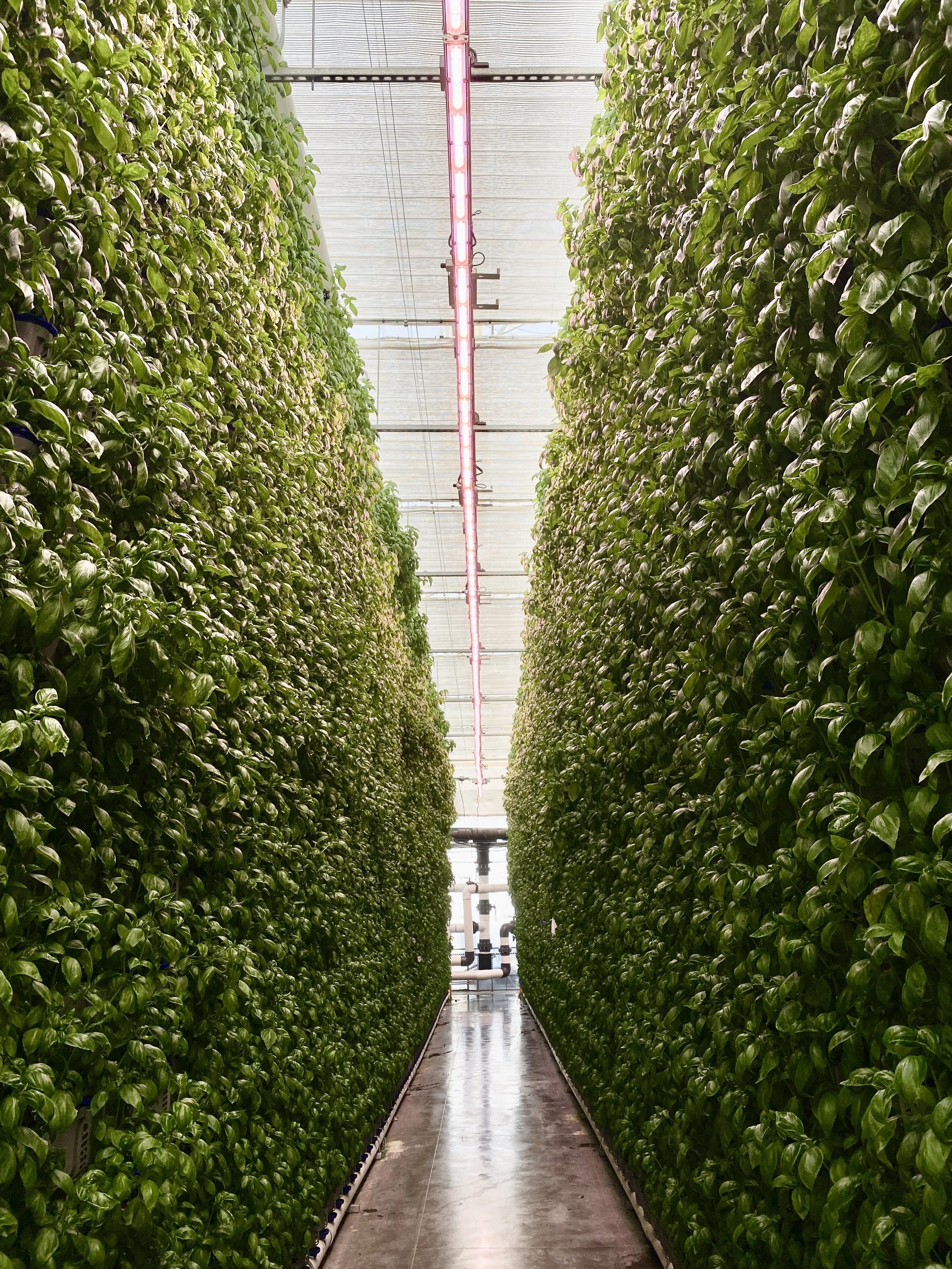 A row of Basil growing at the Eden Green facility in Cleburne, Texas.